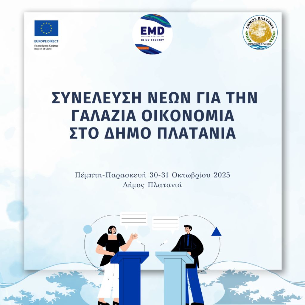 Στο πλαίσιο των Ευρωπαϊκών Ημερών Θάλασσας, το Europe Direct της Περιφέρειας Κρήτης και ο Δήμος Πλατανιά συνδιοργανώνουν δράση για μαθητές Α΄και Β΄Λυκείου, με τίτλο: