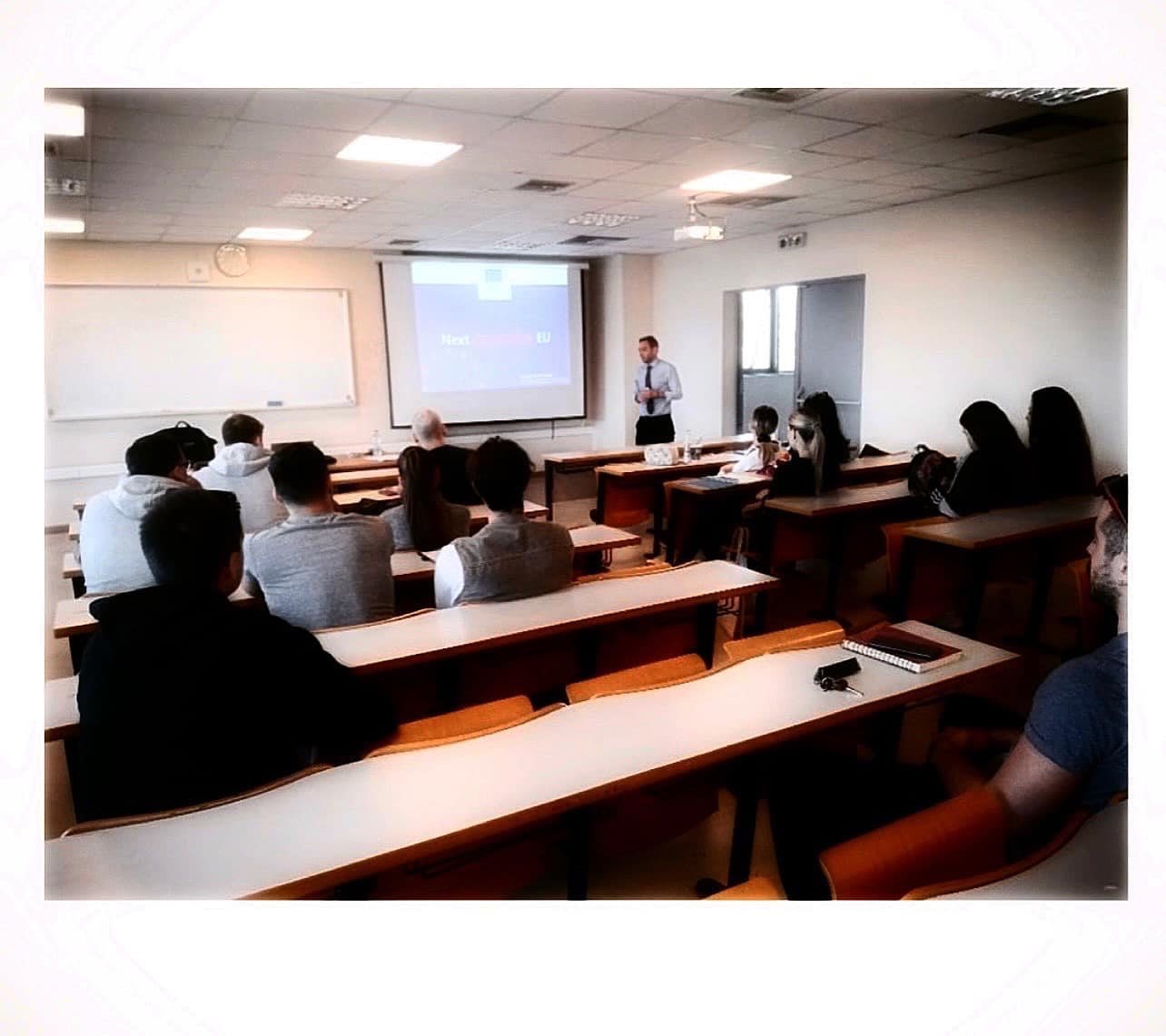 Στις 23/11/2022 στη Σχολή Επιστημών Διοίκησης και Οικονομίας του Ελληνικού Μεσογειακού Πανεπιστημίου στις 15.00 πραγματοποιήθηκε ενημερωτική δράση αναφορικά των κεντρικών αξόνων του Next Generation EU από το Νικόλα Μωραϊτάκη, στέλεχος του Europe Direct της Περιφέρειας Κρήτης
