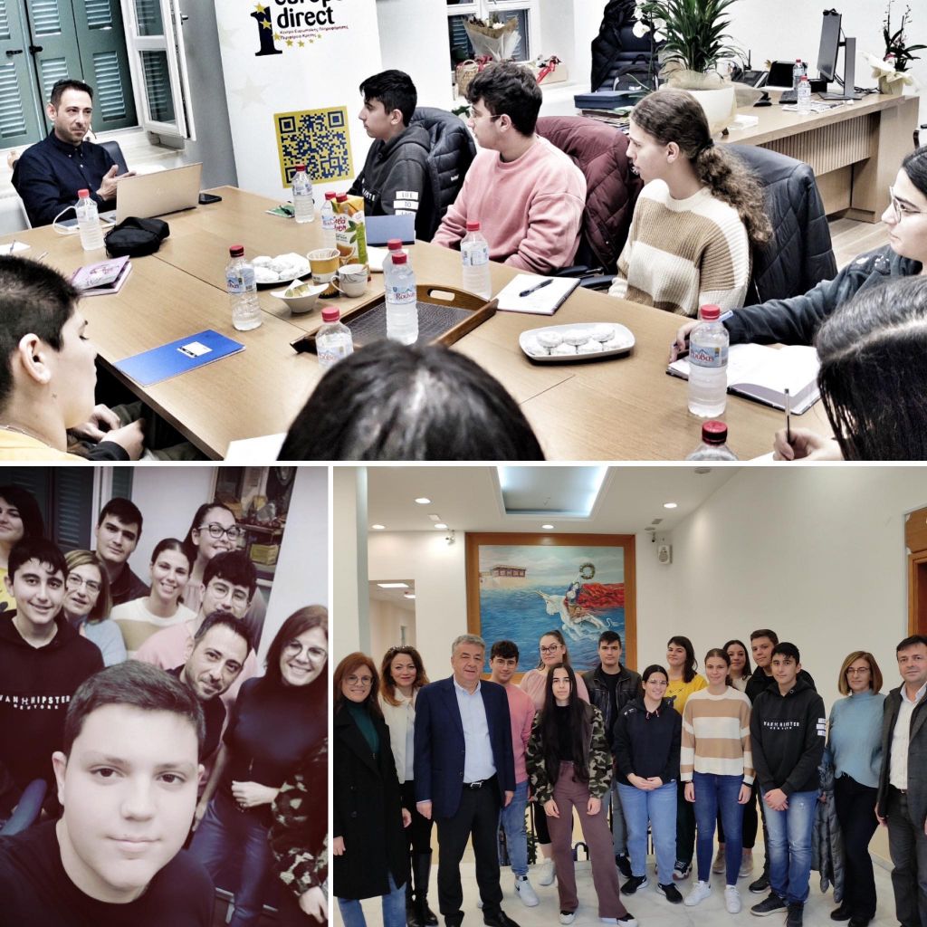 Στο πλαίσιο της συμμετοχής δωδεκαμελούς ομάδας μαθητών και μαθητριών του σχολείου στο εν λόγω πρόγραμμα, είχε μία διά ζώσης συνάντηση με τον εκπρόσωπο του γραφείου EUROPE DIRECT της Περιφέρειας Κρήτης, Νίκο Μωραϊτάκη. Η συνάντηση πραγματοποιήθηκε στο κεντρικό κτήριο της Περιφέρειας Κρήτης, στο Ηράκλειο.