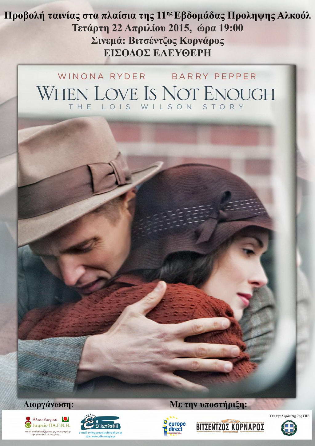 Από 18-24 Απριλίου 2015 θα πραγματοποιηθούν με τη στήριξη του Europe Direct Κρήτης εκδηλώσεις για την " 11η Εβδομάδα Πρόληψης Αλκοόλ" στο Ηράκλειο και το Ρέθυμνο με κεντρικό μήνυμα "Αλκοόλ και ΟΙκογένεια. Όσο Λιγότερο Τόσο Καλύτερα".