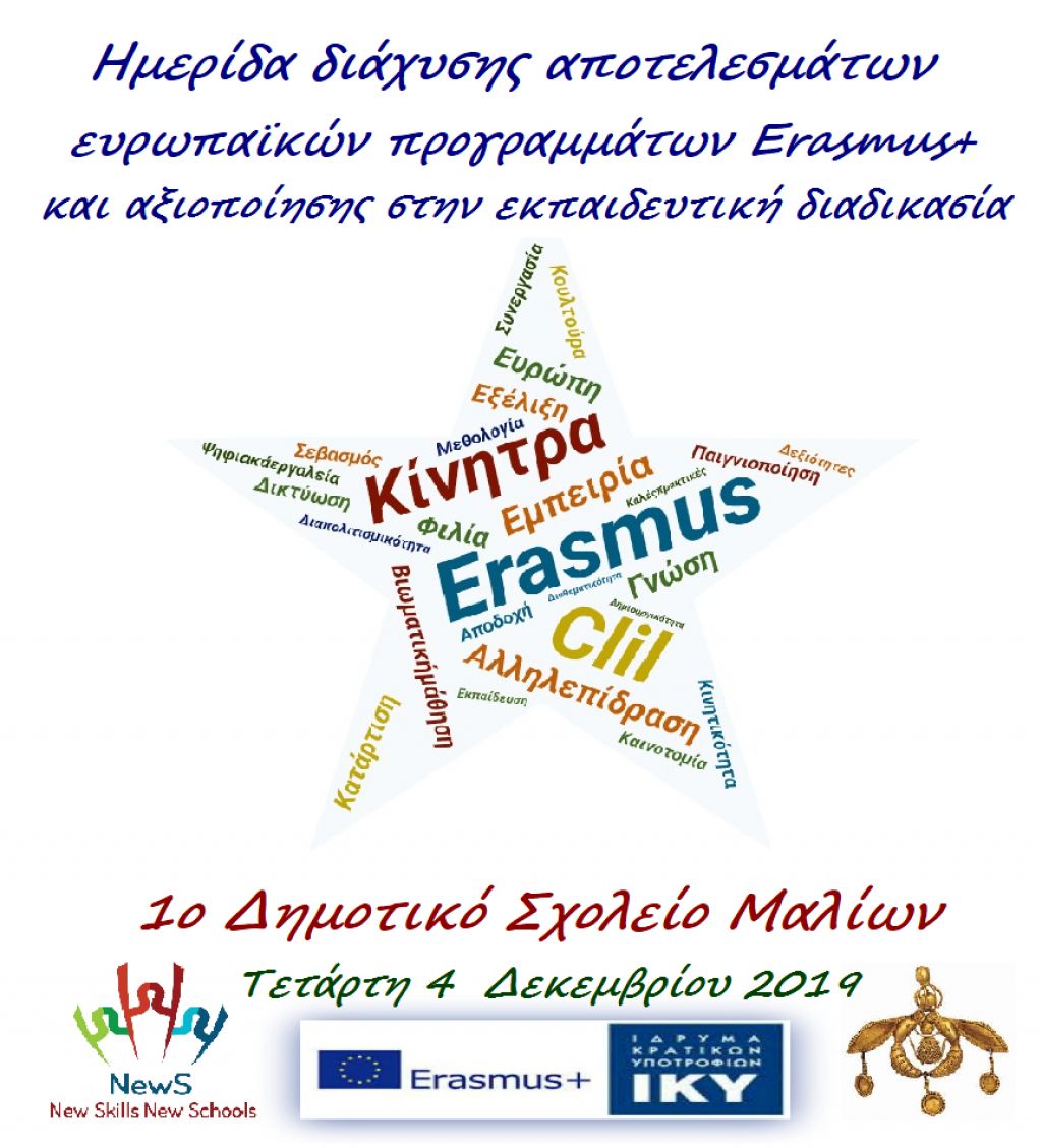 Συμμετοχή του Europe Direct της Περιφέρειας Κρήτης στην Επιμορφωτική Ημερίδα Της Συντονίστριας Εκπαιδευτικού Έργου 10ης Ενότητας Σχολικών Μονάδων Ηρακλείου-Λασιθίου με θέμα: «Διάχυση αποτελεσμάτων Erasmus+και αξιοποίηση στην εκπαιδευτική διαδικασία», στις 4 Δεκεμβρίου 2019, ημέρα Tετάρτη, στην αίθουσα εκδηλώσεων των Δημοτικών Σχολείων 1ου και 2ου Μαλίων.