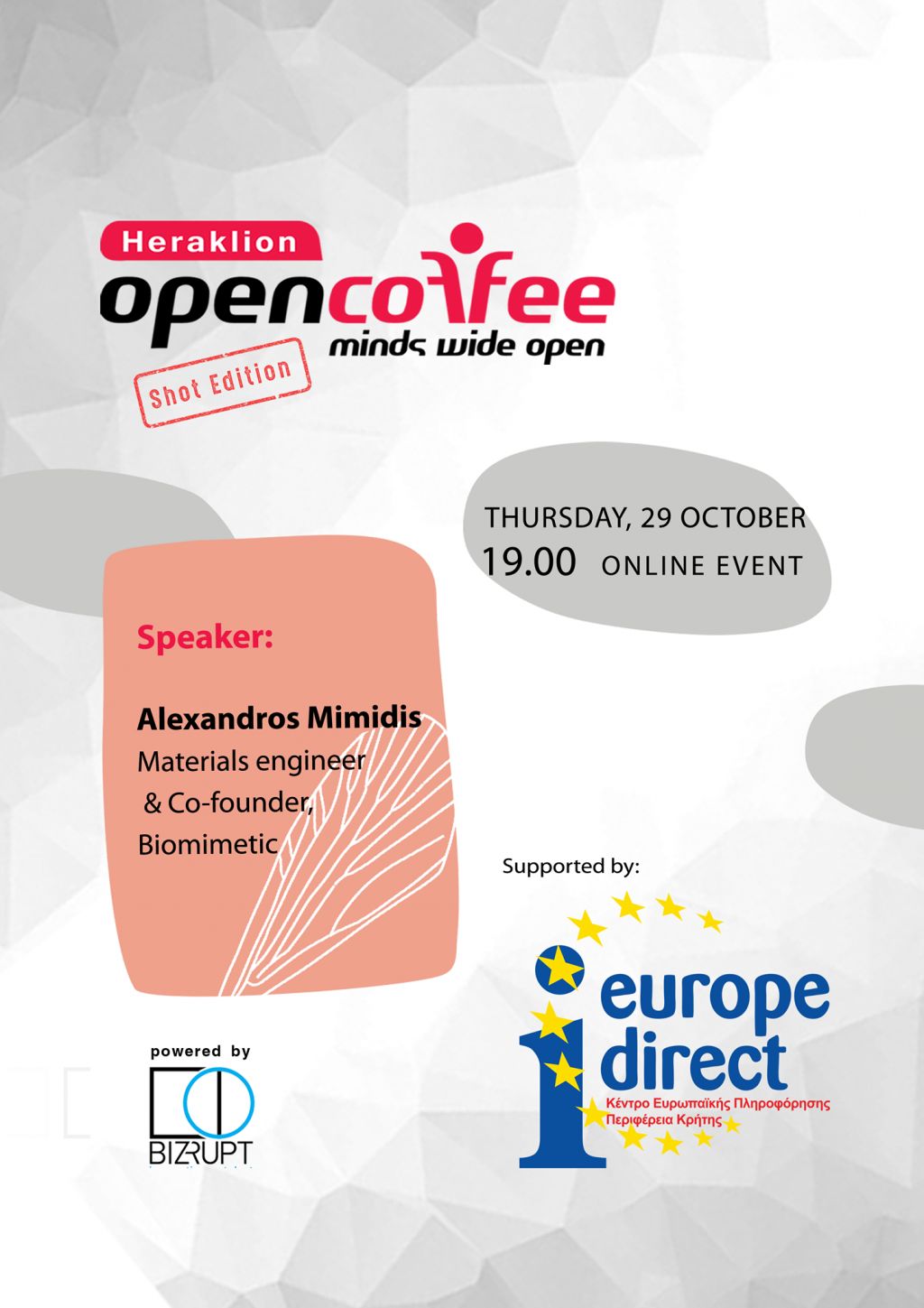 Στο 13ο Open Coffee Heraklion, ομιλητής θα είναι ο Αλέξανδρος Μιμίδης, Materials engineer & Co-Founder της #Biomimetic.